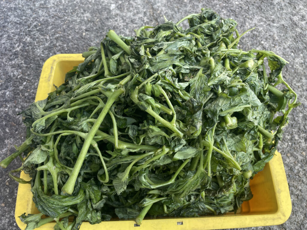 トマトの葉を絞ると減量率80%